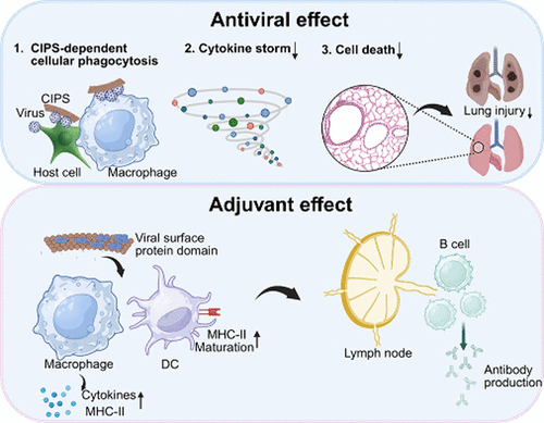 图1 CIPS顺利获得CIPS依赖性细胞吞噬实现抗病毒与疫苗佐剂双重功能的工作机制示意图